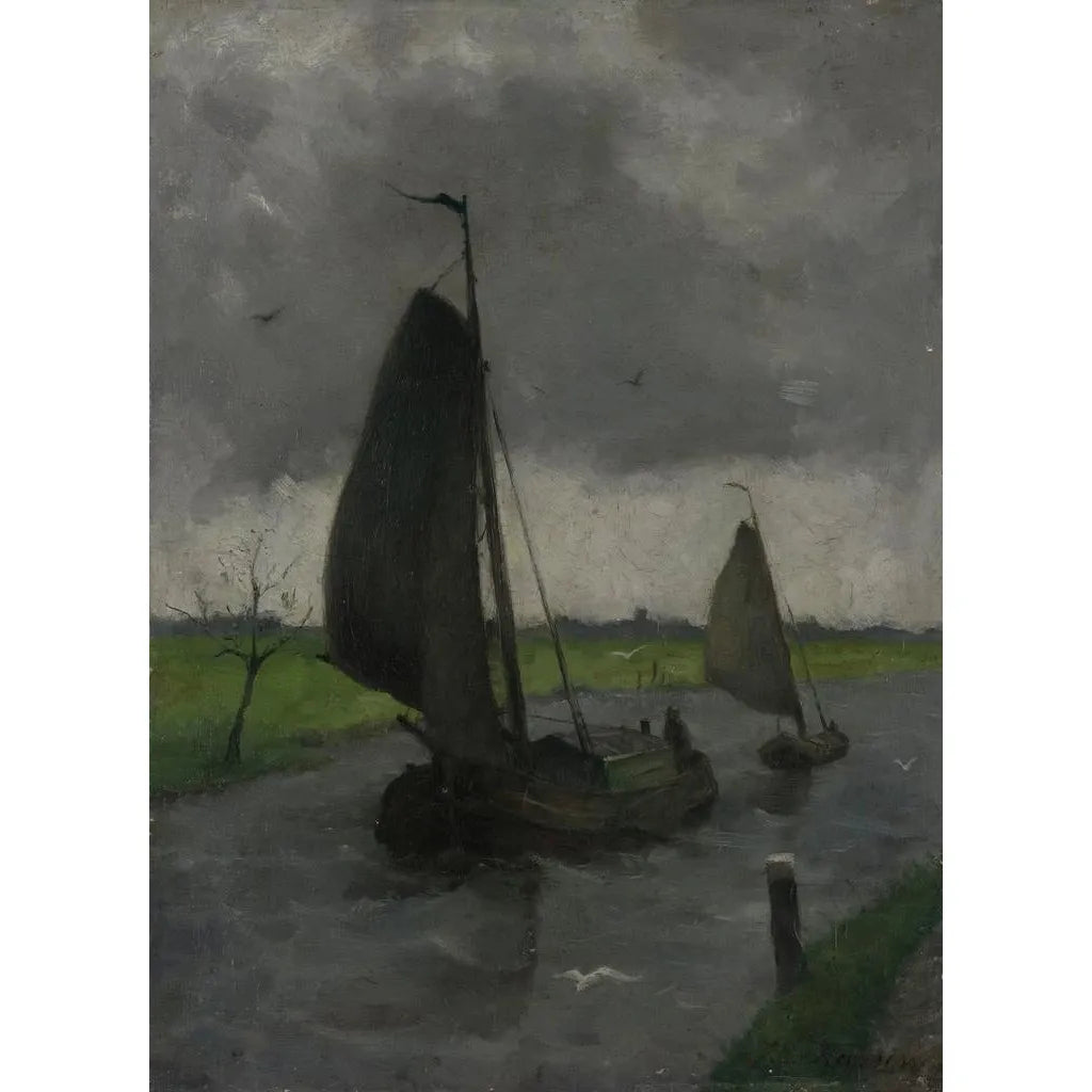 Kunstdruck | Wasserlauf mit Segelbooten - Eduard Karsen