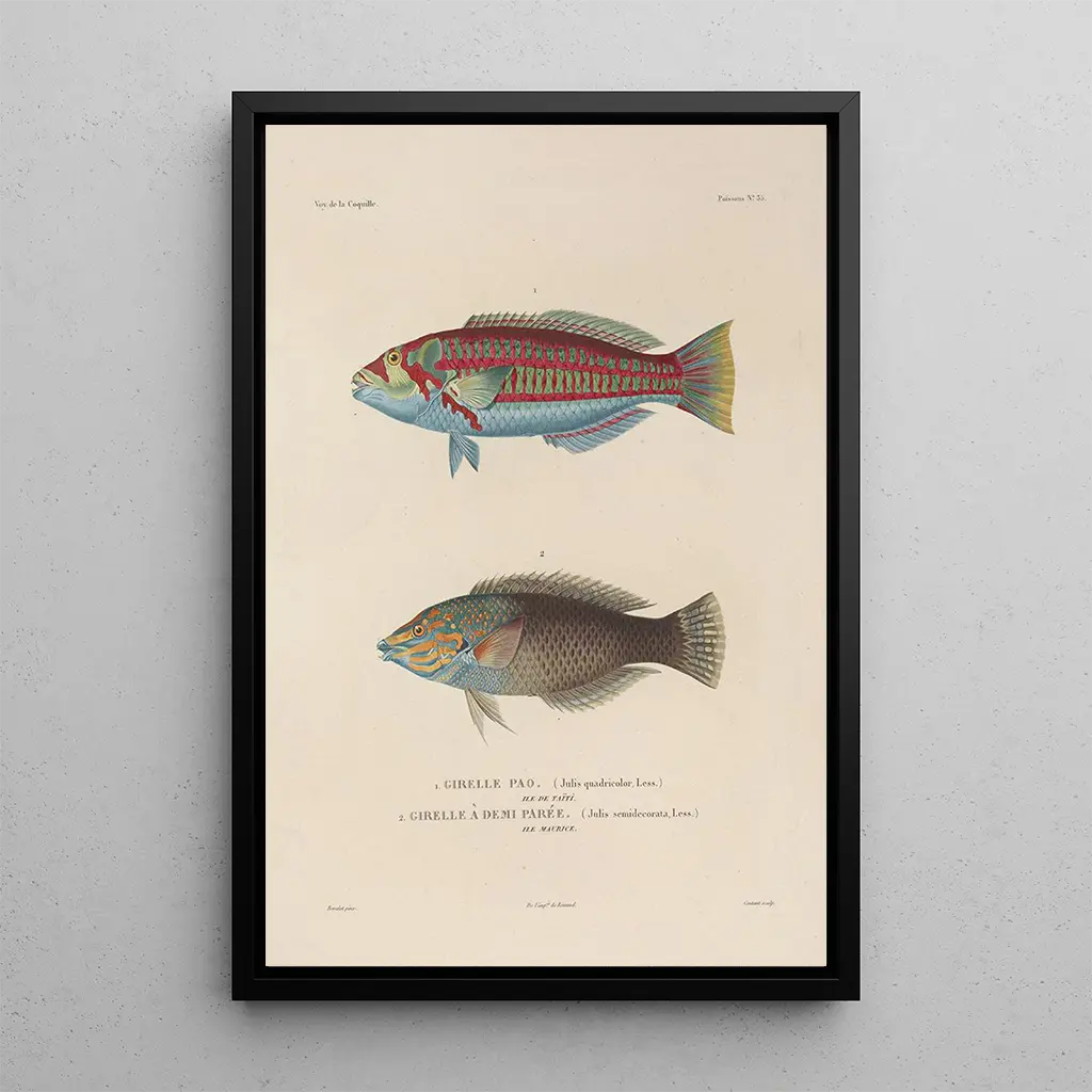Diese kunstdruck des Gemäldes "Voyage um die Welt Pl042" von Louis-Isidore Duperrey taucht uns in eine fesselnde maritime atmosphäre ein. Die nuancen von blau erinnern an die tiefen des ozeans, während die akzente von weiß und beige die segel der schiffe illustrieren, die auf den wellen gleiten. Die dynamische komposition, mit ihren fließenden linien und detaillierten details, lädt den zuschauer ein, das abenteuer und die entdeckung zu imaginieren. Jedes element des gemäldes scheint eine geschichte zu erzählen, die eines reisens durch exotische landschaften und ferne horizonte, wo das meer zum theater der menschlichen erkundung wird.