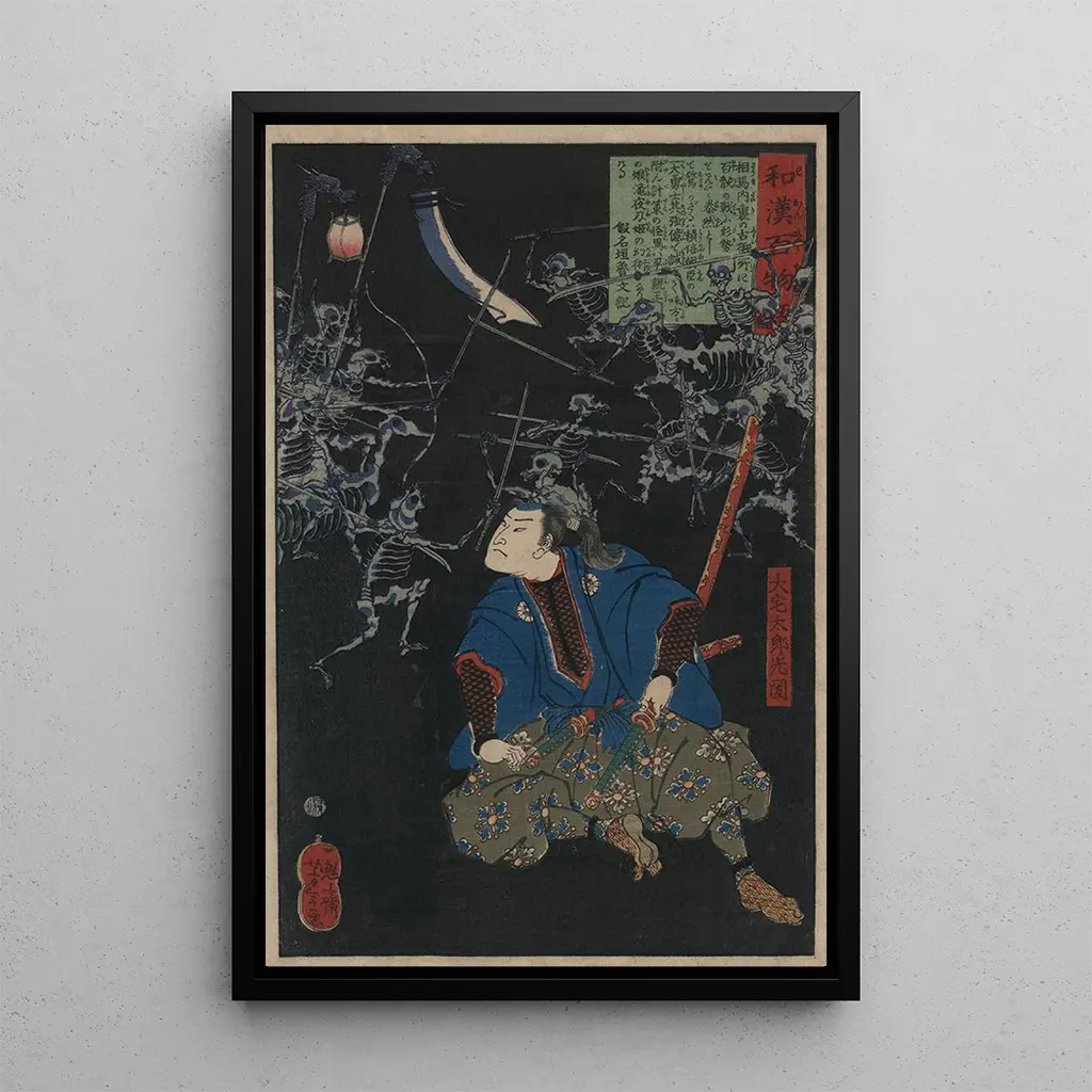 Die kunstdruck der Arbeit "Ya tar mitsukuni" von Tsukioka Yoshitoshi entführt uns in eine Welt voller Legenden und Traditionen. Dieses Gemälde, voller Geheimnisse, verwendet lebendige Farben und beeindruckende Kontraste, um mythologische Figuren darzustellen. Die detaillierten Kostüme und Gesichtsausdrücke schaffen eine Atmosphäre, die sowohl dramatisch als auch fesselnd ist. Die Holzschnitttechnik, die Yoshitoshi meisterhaft beherrscht, verleiht dem Werk eine einzigartige Textur, die zur visuellen Erkundung einlädt. Jedes Element der Komposition scheint eine Geschichte zu erzählen und den Betrachter in eine uralte Erzählung zu vertiefen.