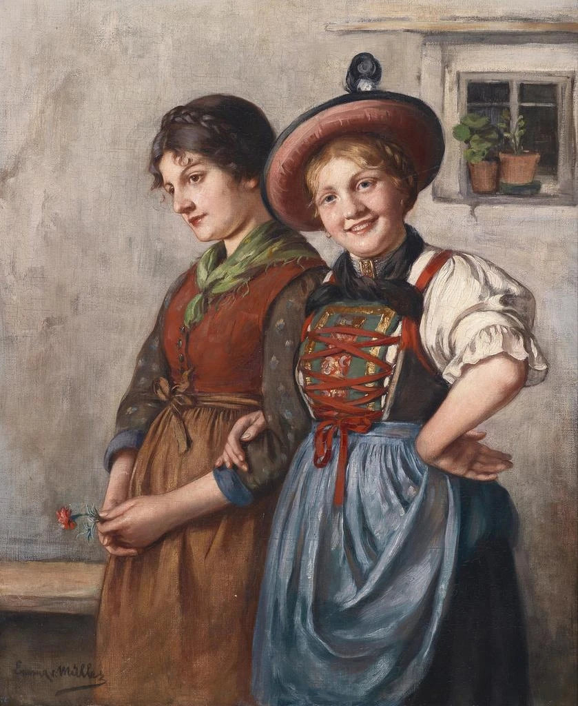 Kunstdruck | Zwei Dirndl - Emma Müller von Seehof