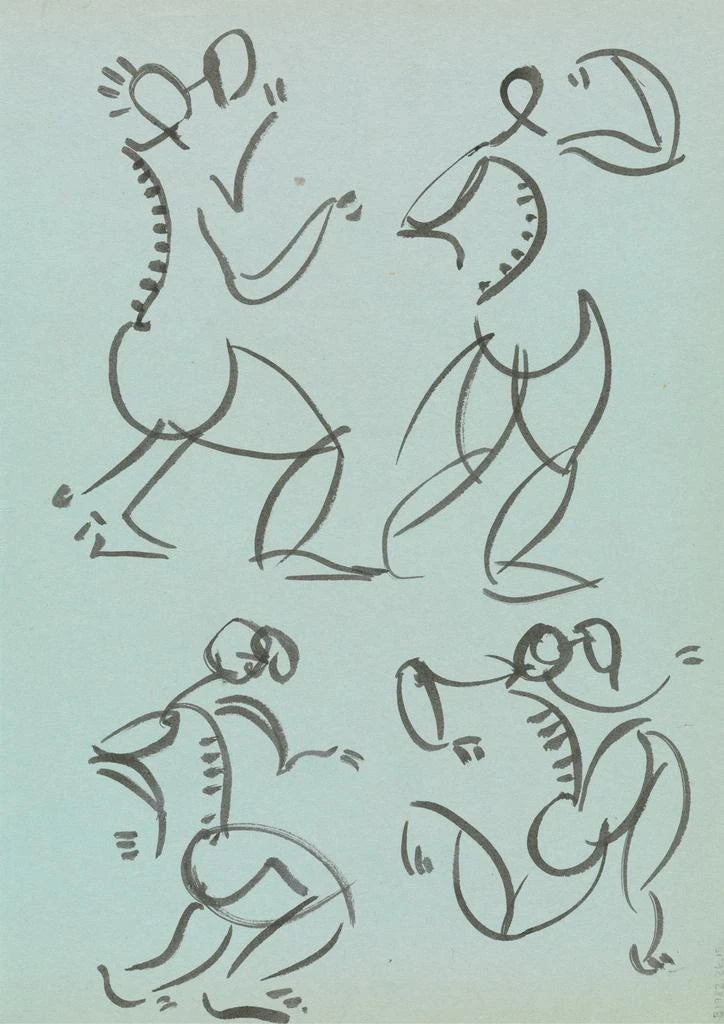 In "Zwei stehende Figuren" erfasst Henri Gaudier-Brzeska die Essenz der Bewegung durch die skulptur. Die beiden stilisierten und dynamischen Figuren scheinen unter dem Einfluss des Lichts zum Leben zu erwachen, wobei die Kurven und Winkel ihres Körpers hervorgehoben werden. Die Technik der direkten Größe, charakteristisch für den Künstler, verleiht dem Werk eine rohe und authentische Textur, während die Nuancen der Terrakotta eine organische Wärme hervorrufen. Die Atmosphäre, die von diesem Stück ausgeht, ist sowohl lebendig als auch kontemplativ und lädt den Betrachter ein, über die Beziehung zwischen den Figuren und ihrer Umgebung nachzudenken.