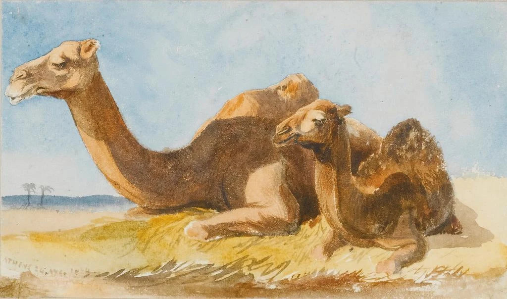 Das Kunstdruck Deux chameaux von Thomas Hartley Cromek entführt uns in eine karge und faszinierende Szenerie, in der diese majestätischen Tiere mit Würde aufragen. Das Werk, geschaffen mit warmen Farbtönen und zarten Schatten, ruft die Hitze der Wüste und die wilde Schönheit der Natur hervor. Die Kamele, Symbole für Widerstandsfähigkeit und Anpassungsfähigkeit, werden mit großer Liebe zum Detail dargestellt, wobei ihre Essenz und ihr Charakter eingefangen werden. Die Atmosphäre dieses Gemäldes ist sowohl friedlich als auch kraftvoll und lädt den Betrachter ein, die weiten Wüstenlandschaften zu erkunden und den Ruf des Abenteuers zu spüren.