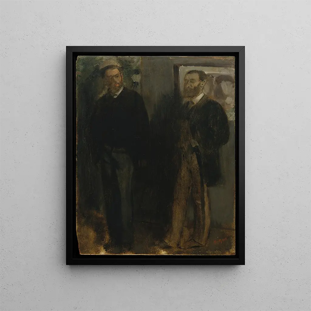 In der faszinierenden Welt der Kunst gelingt es einigen Werken, Momente von Intimität und Verbundenheit einzufangen und so den einfachen Rahmen der Leinwand zu transzendieren. "Zwei Männer - Edgar Degas" ist eines dieser Werke, das durch seine emotionale Tiefe und seine subtile Atmosphäre dazu einlädt, menschliche Beziehungen durch die Linse des künstlerischen Blicks zu erkunden. Dieses Gemälde, zugleich einfach und komplex, evoziert eine Alltagsszene, in der sich zwei männliche Figuren begegnen, vertieft in ein Gespräch, das scheinbar in der Zeit stillsteht. Licht, Schatten und feine Details tragen dazu bei, eine visuelle Erzählung zu schaffen, die uns anspricht und fasziniert. Stil und Einzigartigkeit des Werks Der Stil von Edgar Degas ist unbestreitbar durch einen impressionistischen Ansatz geprägt, hebt sich jedoch durch eine einzigartige Technik und ein scharfes Gespür für Komposition hervor. In "Zwei Männer" spielt Degas mit Licht und Formen, nutzt dynamische Pinselstriche, die den Figuren Leben einhauchen. Die Haltung der Männer, ihre Gestik und die Gesichtsausdrücke sind ebenso Elemente, die die Meisterschaft des Künstlers in der Darstellung menschlicher Emotionen offenbaren. Dieses Gemälde zeichnet sich auch durch eine sorgfältig ausgewählte Farbpalette aus, in der warme und kalte Töne sich verweben, um eine intime Atmosphäre zu schaffen. Das Werk beschränkt sich nicht nur auf die Darstellung einer Szene, sondern erzählt eine Geschichte – das einer Begegnung, eines Austauschs, einer stillen Verbundenheit, die beim Betrachter nachklingt. Der Künstler und sein Einfluss Edgar Degas, eine ikonische Figur des impressionistischen Bewegungs, verstand es, Tradition und Moderne während seiner gesamten Karriere zu verbinden. Geboren 1834, wurde er zunächst von den klassischen Meistern beeinflusst, bevor er eine persönlichere Sichtweise auf die Kunst entwickelte. Sein Interesse am Bewegung, das er durch Themen wie Tanz, urbanes Leben und Café-Szenen erforschte, zeigt sich voll und ganz in "Zwei Männer". Degas konnte die Essenz des modernen Lebens seiner Zeit einfangen, experimentierte dabei mit neuen Blickwinkeln und innovativen Techniken. Sein Erbe besteht bis heute weiter und inspiriert zahlreiche Künstler weltweit, die in ihm einen Pionier sehen.